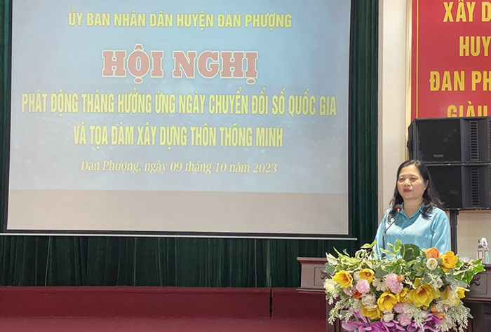 Tại Hội nghị, Phó Chủ tịch UBND huyện Đan Phượng Đào Thị Hồng đã phát động Tháng hưởng ứng Ngày chuyển đổi số quốc gia (10/10). Theo đó, huyện Đan Phượng đề nghị các xã tiếp tục củng cố và nâng cao hiệu quả hoạt động “Tổ công nghệ số cộng đồng”; nâng cao chất lượng xây dựng “thôn thông minh”; triển khai thí điểm xây dựng mô hình “xã thông minh”.
