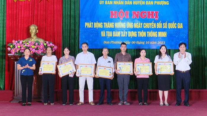 Tại Hội nghị, huyện Đan Phượng đã khen thưởng 16 Tổ công nghệ số cộng đồng và tặng mỗi Tổ 1 điện thoại thông minh.