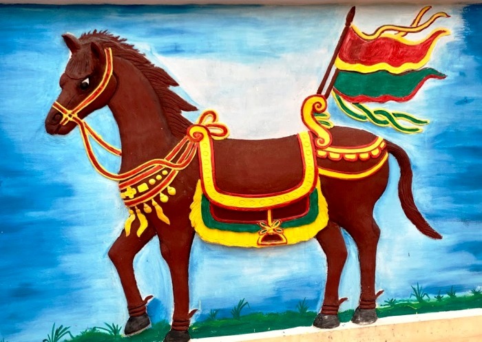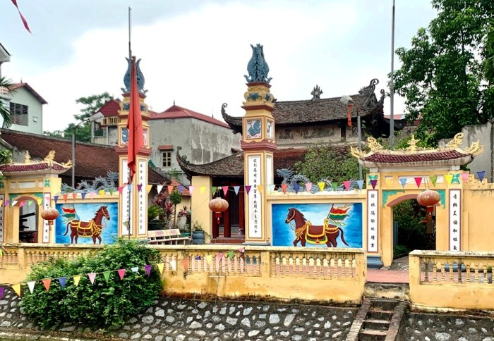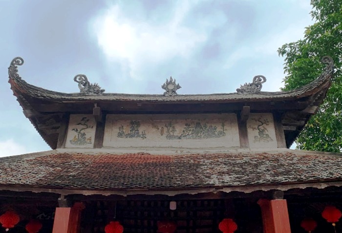 Bức tường trong đình được trang trí đẹp mắt
