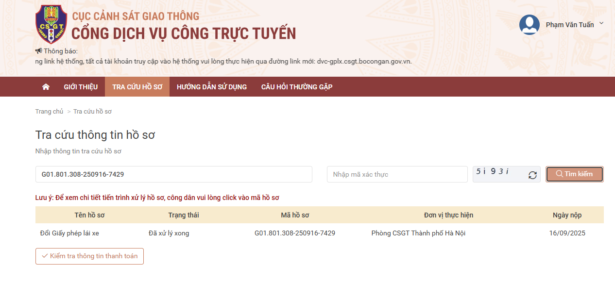 Kính gửi quý cơ quan! Tôi có làm thủ tục đổi giấy phép lái xe C1 ngày 16/09/2025 và được nhận kết quả đã xử ký xong ngày 06/10/2025, mã số hồ sơ 'G01.801.308-250916-7429' nhưng đến nay tôi vẫn chưa nhận được bằng lái bản cứng qua bưu điện. Tôi kính mong cơ quan xem xét và cấp bằng lái xe ô tô bản cứng cho tôi (ảnh kết quả đính kèm). Tôi xin chân thành cảm ơn quý cơ quan!