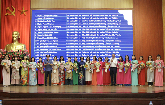 Lãnh đạo quận Tây Hồ trao thưởng cho các giáo viên hoàn thành tốt nhiệm vụ biệt phái, năm học 2022 - 2023
