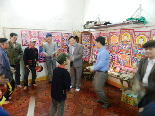 Người Dao đặc biệt quan tâm đến việc lập bàn thờ. Khác với người Mường, người Kinh, bàn thờ của người Dao không đặt ở gian giữa mà đặt ở góc nhà, với quan niệm là nơi thâm nghiêm, yên tĩnh và linh liêng nhất. Việc lập bàn thờ cũng rất công phu, đặc biệt là tranh thờ. Có nhà phải tích cóp 5 đến 10 năm mới hoàn chỉnh xong các bộ tranh thờ. Sau khi sắm sửa đầy đủ các nghi lễ, họ phải làm thêm lễ tạ thì nhà nào có bàn thờ lớn mới thành nhà Tổ. Khi có nhà Tổ và đủ các bộ tranh thần mới được làm lễ Tết nhảy. Trong 03 ngày diễn ra lễ Tết nhảy không thể thiếu 6 bài Múa rùa rất nổi tiếng và được lưu truyền đến nay.