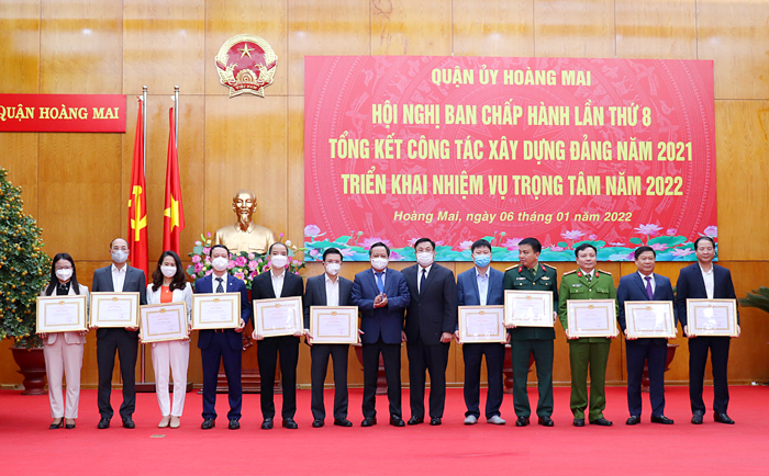 Phó Bí thư Thành ủy Nguyễn Văn Phong khen thưởng các đảng bộ thuộc quận Hoàng Mai hoàn thành xuất sắc nhiệm vụ năm 2021