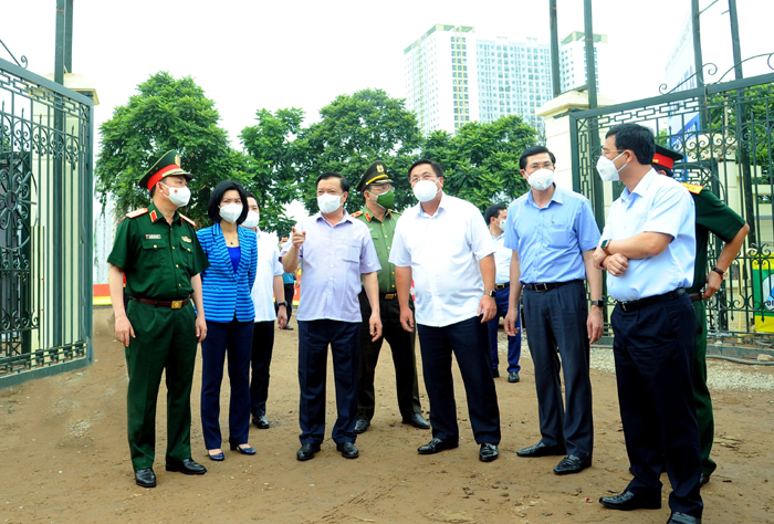 Bí thư Thành ủy Đinh Tiến Dũng kiểm tra công tác phòng, chống dịch Covid-19 tại quận Hoàng Mai