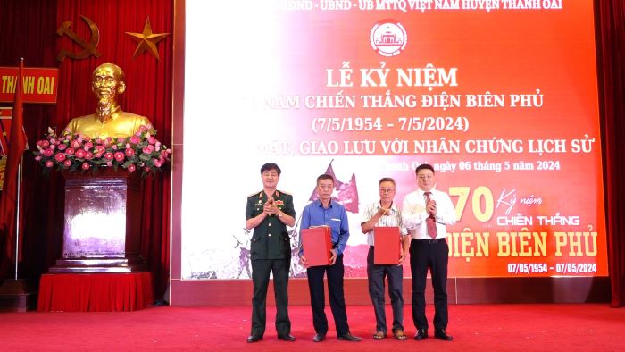 Tại buổi lễ, ôn lại truyền thống hào hùng của dân tộc, Bí thư Huyện ủy Thanh Oai Bùi Hoàng Phan nhấn mạnh: Chiến thắng Điện Biên Phủ là một bản anh hùng ca bất hủ bắt nguồn từ truyền thống lịch sử vẻ vang của dân tộc ta, từ sự lãnh đạo sáng suốt của Đảng và Chủ tịch Hồ Chí Minh vĩ đại, từ sức mạnh của khối đại đoàn kết toàn dân và ý chí quyết tâm chiến đấu vì độc lập tự do của Tổ quốc, của quân và dân ta.
