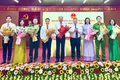 Tặng hoa chúc mừng các đồng chí trúng cử các chức danh lãnh đạo HĐND xã Hạ Bằng