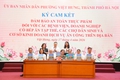 Lãnh đạo phường Việt Hưng chứng kiến nội dung ký cam kết bảo đảm an toàn thực phẩm