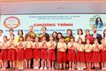 Các đại biểu chụp ảnh lưu niệm với Thầy và trò Trường Tiểu học Bùi Quốc Khái