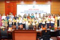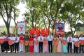 Đại diện Sở Văn hóa và Thể thao Hà Nội và lãnh đạo xã Dân Hòa trao cờ lưu niệm tặng các đoàn tham dự Đại hội