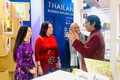 Phó Giám đốc Sở Văn hóa và Thể thao Hà Nội Nguyễn Thị Mai Hương thăm gian hàng và trao đổi về hợp tác xuất bản với đại diện Hiệp hội Xuất bản Thái Lan.