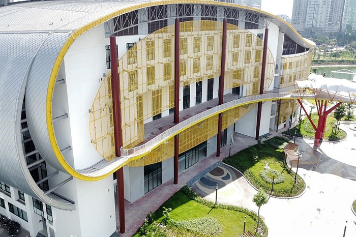 Khu công trình gồm một nhà hát với sức chứa khoảng 800 chỗ ngồi, rạp chiếu phim 200 chỗ, nhà thi đấu 500 chỗ cùng với bể bơi 10 làn, hệ thống phòng học, thư viện và văn phòng hiện đại.