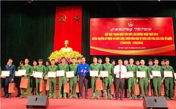 Phát biểu tại chương trình, Phó Bí thư Thành đoàn Nguyễn Đức Tiến cho biết, tiếp nối truyền thống “Quyết tử cho Tổ quốc quyết sinh” và các phong trào “Ba sẵn sàng”, “Xếp bút nghiên lên đường chiến đấu” của thanh niên, sinh viên Thủ đô trong những năm tháng chiến tranh chống thực dân Pháp, đế quốc Mỹ và các cuộc chiến tranh bảo vệ biên giới, những năm qua, các thế hệ thanh niên Hà Nội luôn xung kích, tình nguyện thực hiện tốt các nhiệm vụ quốc phòng, an ninh, hoàn thành xuất sắc các nhiệm vụ mà Quân đội giao phó, đảm bảo chỉ tiêu tuyển chọn công dân lên đường nhập ngũ với chất lượng tân binh ngày càng cao. Hàng vạn thanh niên đã hoàn thành xuất sắc nhiệm vụ của mình trong Quân đội, nhiều người đã trở thành sỹ quan quân đội, quân nhân chuyên nghiệp phục vụ lâu dài trong lực lượng vũ trang. Nhiều bạn được rèn luyện thử thách trong môi trường Quân đội xuất ngũ trở về tham gia công tác trở thành những cán bộ lãnh đạo trong các cơ quan đảng, chính quyền, mặt trận, đoàn thể ở địa phương, đóng góp tích cực cho công cuộc xây dựng và phát triển quê hương.