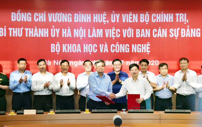 Bí thư Thành ủy Vương Đình Huệ nhấn mạnh, những nội dung trên sẽ được cụ thể hóa trong Thông báo Kết luận của Bí thư Thành ủy với Bí thư Ban Cán sự Đảng Bộ KH&CN. Trên cơ sở đó, Bộ KH&CN và UBND Thành phố sẽ ký Biên bản ghi nhớ hợp tác để triển khai, định kỳ có sơ kết, đánh giá, rút kinh nghiệm.