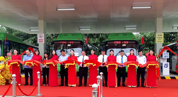 Các đại biểu cắt băng khai trương tuyết xe buýt CNG