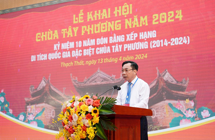 Phát biểu khai mạc Lễ hội, Chủ tịch UBND huyện Thạch Thất Nguyễn Mạnh Hồng cho biết, Thạch Thất là vùng đất cổ, là vùng quê có truyền thống lịch sử văn hóa lâu đời, với những bản sắc của văn hóa xứ Đoài, hòa chung với nền văn hóa Thăng Long Hà Nội - Thủ đô ngàn năm văn hiến.