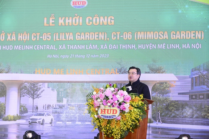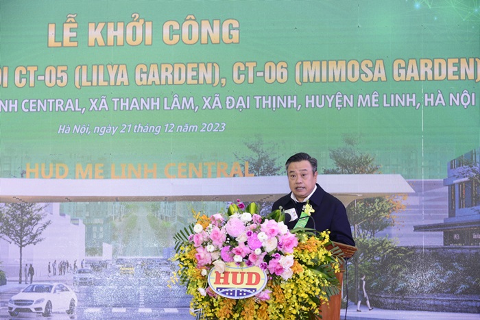 Tại buổi lễ, Chủ tịch UBND thành phố Hà Nội Trần Sỹ Thanh cũng đánh giá cao những nỗ lực, cố gắng của Tổng công ty HUD cùng các đơn vị, sở ngành, chính quyền huyện Mê Linh để dự án đủ điều kiện khởi công.