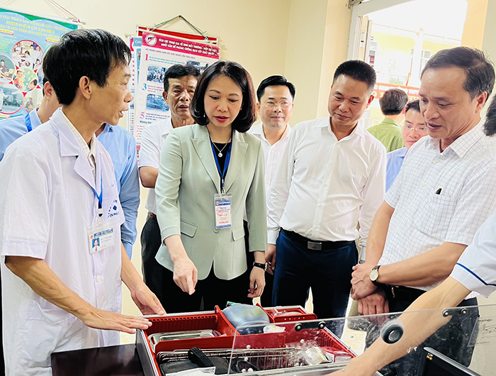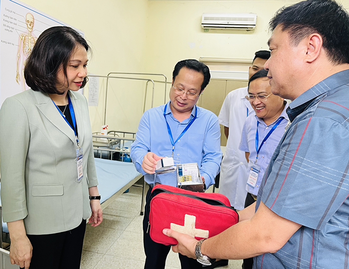 Kiểm tra phòng y tế tại điểm thi trường THPT Nguyễn Trãi, huyện Thường Tín