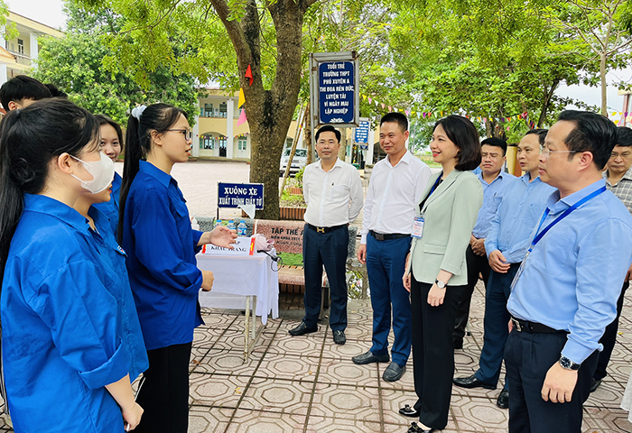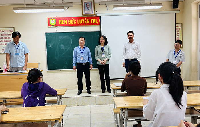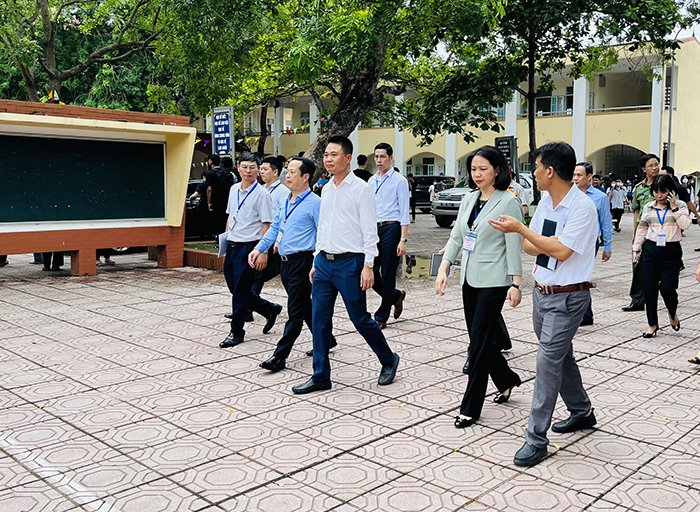 Đồng chí Phó Chủ tịch UBND Thành phố Vũ Thu Hà cùng đoàn kiểm tra tại điểm thi trường THPT Phú Xuyên A