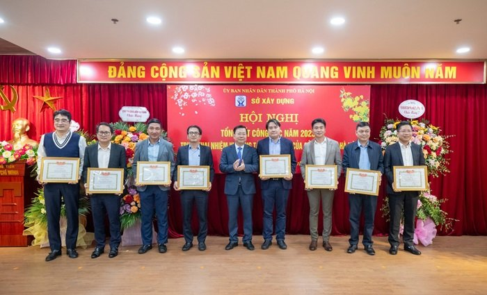 Giám đốc Sở Xây dựng Hà Nội Võ Nguyên Phong trao khen thưởng cho các tập thể, cá nhân