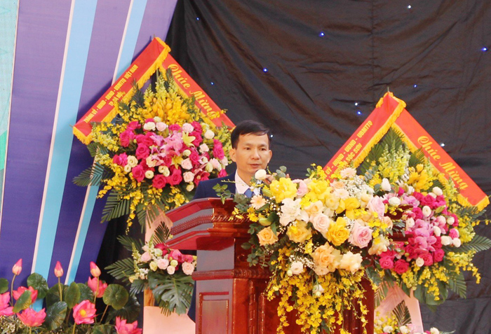 Bí thư Chi bộ, Hiệu trưởng Trường THPT Đa Phúc Nguyễn Duy Hiền trình bày diễn văn kỷ niệm