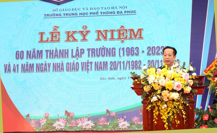Trình bày diễn văn kỷ niệm, Bí thư Chi bộ, Hiệu trưởng Trường THPT Đa Phúc Nguyễn Duy Hiền đã điểm lại những dấu mốc quan trọng của Trường THPT Đa Phúc - tiền thân là trường cấp 3 Nguyễn Đình Chiểu, được thành lập năm 1963. Đây là trường cấp 3 đầu tiên của 2 huyện Đa Phúc và Kim Anh. Khi mới thành lập, trường chỉ có 2 lớp 8 mới tuyển, 1 lớp 9 từ trường cấp 3 Bến Tre chuyển về với 8 thầy, cô giáo và 125 học sinh do thầy Nguyễn Mai phụ trách, được học chung địa điểm với trường cấp 2 Nguyễn Du, nay là Trường Tiểu học Phù Lỗ A - xã Phù Lỗ.