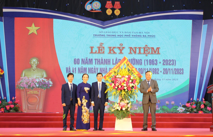 Phó Bí thư Thành ủy Nguyễn Văn Phong tặng hoa chúc mừng Trường THPT Đa Phúc